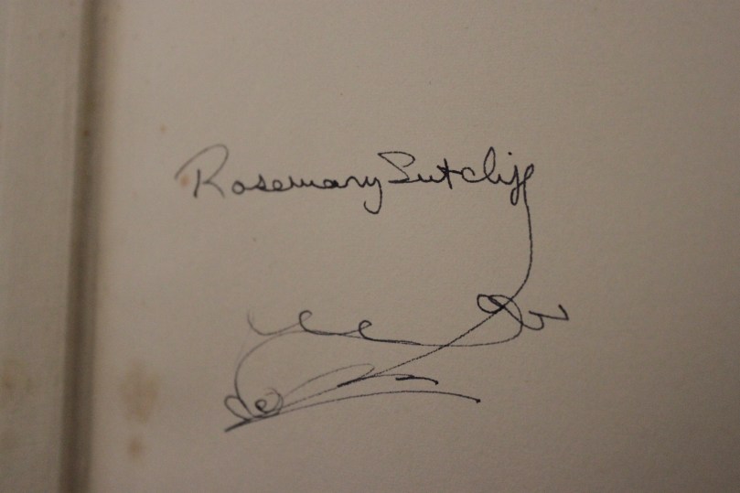 My wife found a signed copy of Rosemary Sutcliff’s historical novel ‘The Eagle of the Ninth’ in my parent’s living room and took a photo. I think this must be the most original signature I’ve ever seen from a writer. I love how the tale turns into a dolphin.