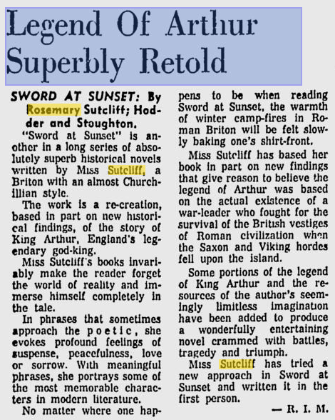 One thought on “Rosemary Sutcliff history novel Sword at Sunset | Legend of King Arthur superbly retold”