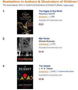 The Eagle of the Ninth by Rosemary Sutcliff selling better than Tolkein’s The Hobbit and War Horse!