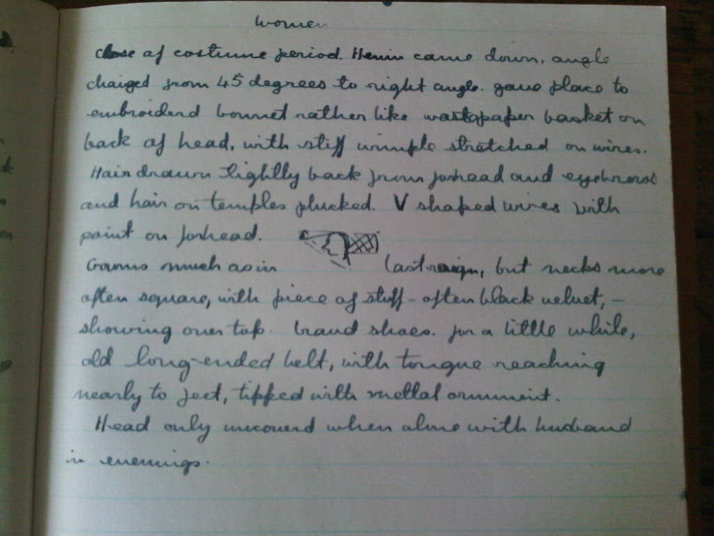 Amongst Rosemary Sutcliff‘s papers on her death was a notebook about costumes in various periods of British history. This is from the section on women, in the reign of Richard the Third (1483-85).