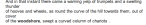 Earlier mention of “The Witch’s Brat” reminded me that it’s one of RS’s books I’d never read, so I thought I’d rectify that. Just a few pages in I was tickled to come across this piece “(Lovel made} like a wild thing for the cover of the trees; and fell at last, full-length, on the woodshore where the Wealden Forest ended in a scrub of hazel and elder and bramble at the edge of the cultivated land.”