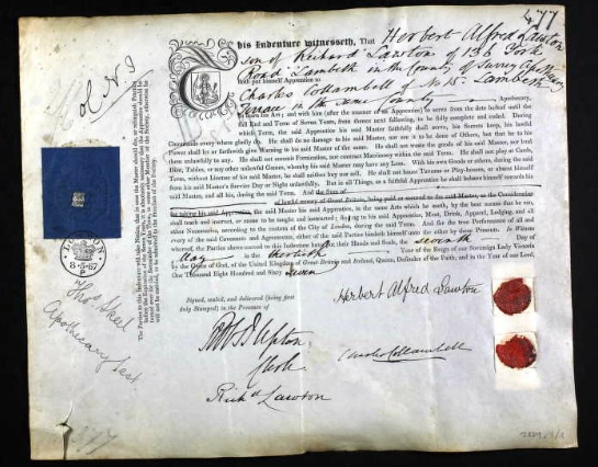 Today’s diary entry by author Rosemary Sutcliff refers to her mother. Coincidentally, I have today come across a copy of the original document which records the indenture as an apprentice apothecary of Rosemary Sutcliff’s grandfather (and my great grand-father), Dr Herbert Alfred Lawton (born 1851, died 1903).