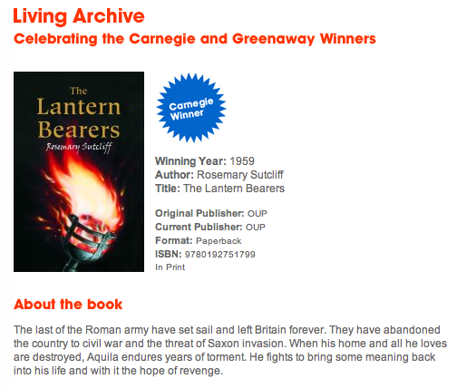 Nominations for Carnegie Medal for Children’s Literature, and Kate Greenaway Medal for illustrated children’s book 2016 announced | Rosemary Sutcliff awarded Carnegie in 1959 for The Lantern Bearers